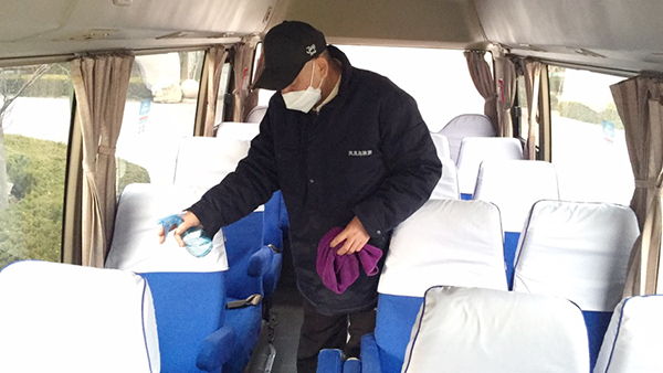 公司為在崗員工發(fā)放了口罩、噴壺、消毒酒精等防護(hù)用品,每日對各工作場所、班車、車庫、電梯、宿舍等進(jìn)行定點(diǎn)消毒。