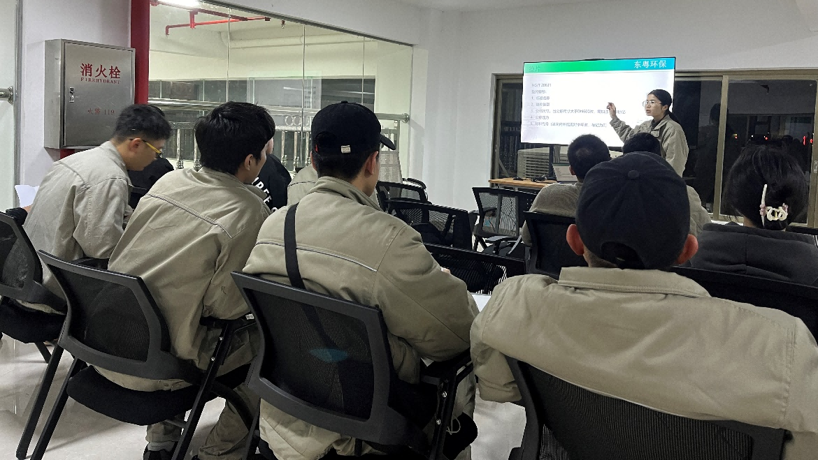 生產(chǎn)部技術骨干積極開展培訓工作,帶頭營造濃烈的學習與鉆研的氛圍,實實在在地拔高了員工的操作水平,為組建一支“有信仰,有膽識,有本領,有擔當”的四有東粵環(huán)保隊伍不懈努力。