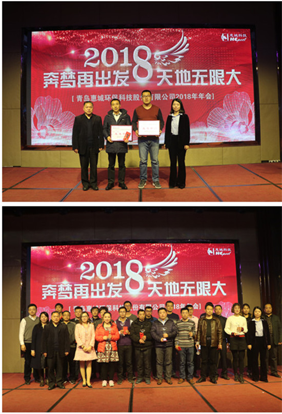 2月9日,青島惠城環(huán)?萍脊煞萦邢薰2018年度主題為“奔?jí)粼俪霭l(fā) 天地?zé)o限大”的總結(jié)表彰暨新春聯(lián)歡會(huì)在青島康大豪生大酒店隆重召開(kāi)。