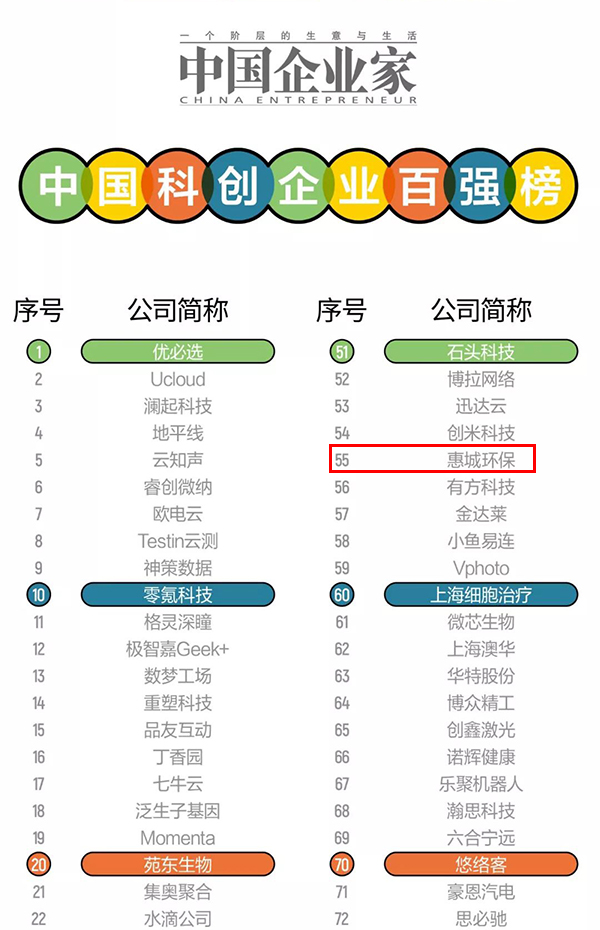 近日,《中國企業(yè)家》發(fā)布“科創(chuàng)企業(yè)百強(qiáng)榜”,我公司青島惠城環(huán)?萍脊煞萦邢薰疚涣衅渲。