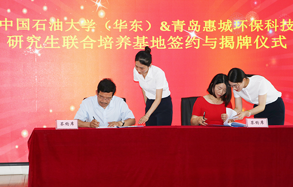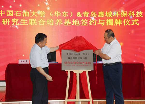 7月15日下午,“中國石油大學(華東)與青島惠城環(huán)?萍佳芯可(lián)合培養(yǎng)基地”揭牌儀式在公司研發(fā)中心隆重舉行,中國石油大學(華東)副校長、研究生院院長李兆敏,研究生院常務副院長閻子峰及學校其他領導、老師,我公司董事長張新功、常務副總經(jīng)理葉紅攜公司核心技術人員及入學石大的學生代表共同出席了此次揭牌儀式。