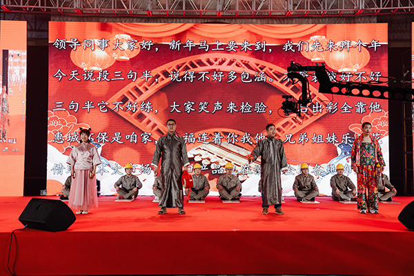 5點(diǎn)30分,文藝晚會正式開始。創(chuàng)意節(jié)目精彩紛呈,全場氛圍熱烈火爆。生產(chǎn)管理部的三句半編排讓人倍感新鮮,情景劇“惠城奇幻夜”天馬行空,舞美效果將晚會推向高潮,小品“相親”表演讓人捧腹,戲曲與勵(lì)志歌曲串燒HIGH翻全場……