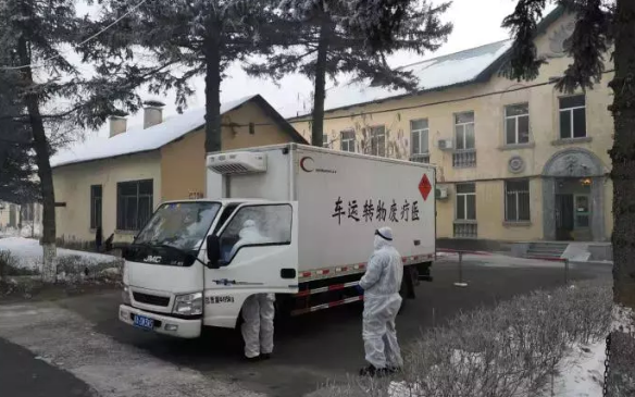 在黑龍江省傳染病防治院,醫(yī)療廢物要照平時更加及時的轉(zhuǎn)運。此時,醫(yī)療廢物轉(zhuǎn)運車正停在這里,對醫(yī)療廢物進(jìn)行清運。黑龍江省傳染病防治院副院長劉玉琴介紹,截至1月30號24時,這里共收治兩例確診病例,疑似病例10多例。相對來說,這些患者病情都比較平穩(wěn)。按照國家和黑龍江省疾控部門的要求,黑龍江省傳染病防治院嚴(yán)格執(zhí)行醫(yī)療廢物處置標(biāo)準(zhǔn),使用黃色收集袋封存醫(yī)療廢物,并噴灑消毒液,并與轉(zhuǎn)運單位隨時溝通,及時轉(zhuǎn)運。劉玉琴說:“每天早晨七點半到八點半會有專車過來,定時、定點、定人轉(zhuǎn)接。根據(jù)患者量產(chǎn)生垃圾不同,下午可能要臨時再過來一次,集中再收走!